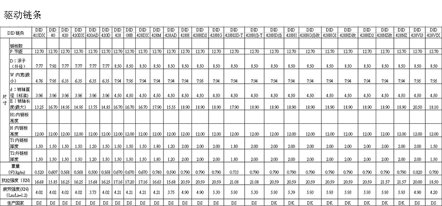 驅(qū)動鏈條一覽表想了解具體情況請點(diǎn)擊右邊鏈接 http://www.didchain.com/